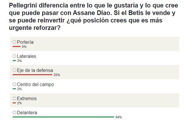 Cabe precisar que la inclinación a vender se centra en la necesidad de equilibrar gastos y cuentas, por lo que, como mucho, Planes sólo dispondría de una pequeña parte de ese supuesto ingreso para reinvertirla en fichajes. No obstante, hoy el Betis juega ante el Celta en un partido que los heliopolitanos afrontan con nueve bajas y con dos nuevos canteranos subiendo para paliar las numerosas bajas atrás. El lateral derecho Pablo Busto sube para suplir las ausencias de Sabaly y Bellerín; mientras que Nobel Mendy lo hace ante las bajas de Chadi Riad y Marc Bartra. Por eso, la segunda opción más votada en la encuesta propuesta por ED es un fichaje para el eje de la zaga, casilla marcada por un considerable 25 por ciento de los participantes. Más secundarias o menos graves son consideradas las coyunturas puntuales en la portería (5%), en los laterales, en la medular o en los extremos (2% cada una).