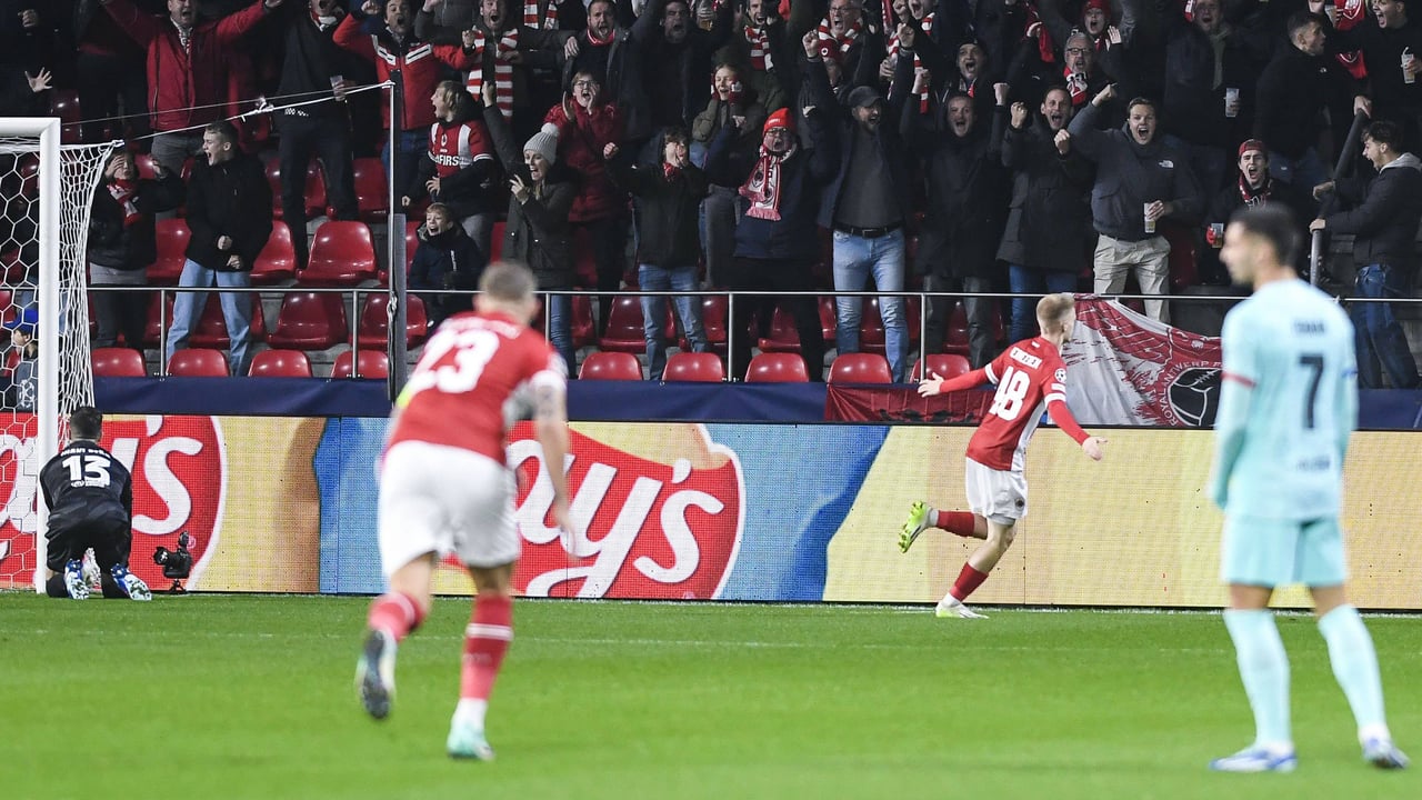 Arthur Vermeeren celebra el tanto en Champions ante el Barça.CORDON PRESS