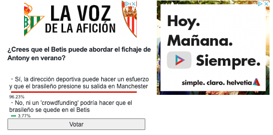 Más del 96% de los votos emitidos en la Encuesta Helvetia de ESTADIO Deportivo son optimistas y creen que la dirección deportiva podrá hacer un esfuerzo en cuanto a lo económico para poder hacer frente al fichaje de Antony. Todo parece indicar que el brasileño también presionará y hará un esfuerzo por quedarse. El fichaje más caro de la historia del equipo bético fue Denilson, por el que se pagaron aproximadamente 30 millones de euros. Con Antony se podría en cifras cercanas, a pesar de que en el portal de Transfermarkt cuente con un valor actual de mercado (a falta de actualización) de veinte millones de euros. Veremos qué sucede.