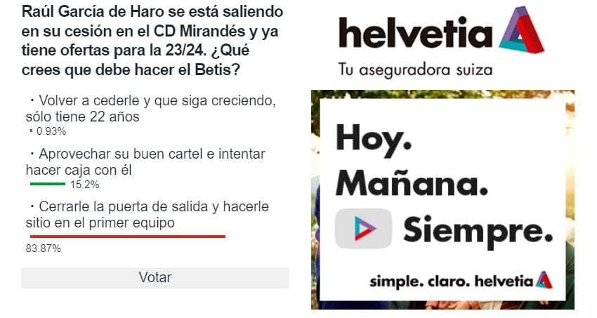 Puede que la evidencia de que Raúl García puede desenvolverse con soltura en la elite convenza al 'Ingeniero' de que merece una oportunidad, compitiendo con Borja Iglesias y Willian José por un puesto en la vanguardia bética. Eso es lo que desearía la mayoría de participantes en la encuesta propuesta por ESTADIO Deportivo (un 83,87% lo ve para el primer equipo verdiblanco), mientras que casi nadie (un 0,93%) lo volvería a dejar salir a préstamo. Minoritario pero reseñable (15,2%) es el porcentaje de respuestas favorable a su venta el próximo verano, aprovechando el buen cartel que se está granjeando en la 22/23. Con contrato hasta 2025 y una cláusula de 30 millones de euros, el atacante de 22 años, criado en Guadix, habrá de tomar a medio plazo una importante decisión.