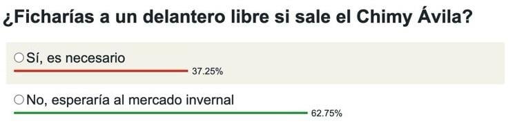 En Estadio Deportivo hemos querido plantear a la afición verdiblanca si ficharía a un delantero libre en el caso de que la salida del Chimy se diera antes del mercado invernal o esperarían a la citada ventana de transferencias para conseguir a un sustituto. La respuesta del aficionado bético ha sido clara. No quieren correr y prefieren tener a un delantero que aporte de verdad. El 62,75% de los votos esperaría al mercado invernal para reforzarse aunque el delantero saliese antes, mientras que el 37,25% sí acudiría al mercado de jugadores libres para firmar al sustituto.