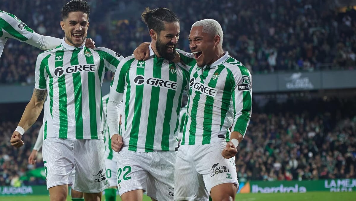 'O Tigrinho' celebra con Bartra e Isco el gol de éste tras penalti provocado por él mismo.IG