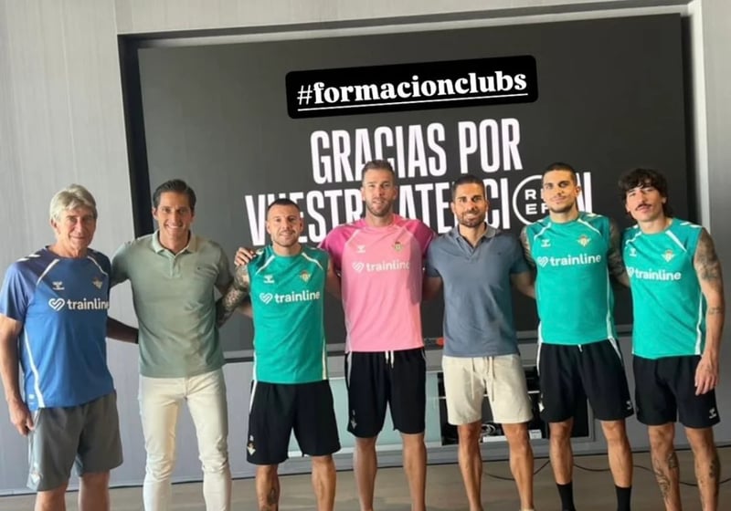 En otro orden de cosas, como apunta 'Alfinaldelapalmera', no habrá cambios en la nómina de capitanes, encargo que seguirá en manos del ahora lesionado Isco Alarcón, así como de Mar Bartra, Aitor Ruibal y Adrián San Miguel, incorporándose Héctor Bellerín como quinto en discordia para hacer frente a posibles rotaciones y bajas, lo que ya le llevó a estrenarse a lo largo de la pasada campaña, igual que hombres como Pablo Fornals y Giovani Lo Celso. La mayoría de ellos participó, junto al 'Ingeniero', en las charlas de formación impartidas estos días por los colegiados de Primera división para trasladar a todos los equipos las normas que regirán en las competiciones nacionales a partir de este fin de semana, con sus posibles adaptaciones o matizaciones respecto a cursos anteriores. La imagen la compartía en sus redes sociales el encargado de dirigirlas, el árbitro andaluz José Luis Munuera Montero.