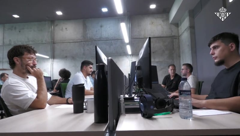 Son declaraciones e imágenes tan interesantes para los amantes del fútbol, que incluso cabría preguntarse por qué los clubes no hacen esto con más frecuencia. El Real Betis ha mostrado parte de su 'making off' para las próximas ventanas de fichajes. La televisión oficial ha mostrado cómo trabajan día a día la dirección deportiva, liderada por un Manu Fajardo bien acompañado y aconsejado por el secretario técnico, Álvaro Ladrón de Guevara; por el jefe de ojeadores, Andrés Fernández; y por un completo equipo de trabajo (Merino, Cañas, Adrián...) que escudriña todo el mercado a nivel mundial. Por un lado, atento a cualquier tipo de oportunidad de mercado que pueda surgir y, en una labor más específica, buscando en puestos muy concretos que pueden anticipar que serán necesario reforzar. En este sentido, una de las tareas pendientes a corto plazo será la de reforzar el lateral zurdo, demarcación en la que acaba contrato un jugador que ya estuvo a punto de salir este pasado verano como es Ricardo Rodríguez (33 años). De hecho, el club llegó a tener muy avanzado a Fábio Nazinho (Círculo Brujas) y llegó a negociar con Javi López (Real Sociedad). La maquinaria para encontrar al mejor sustituto posible para el suizo ya está trabajando a plena potencia y el método sirve para ejemplificar cómo es la actividad diaria que se vive en esos despachos.