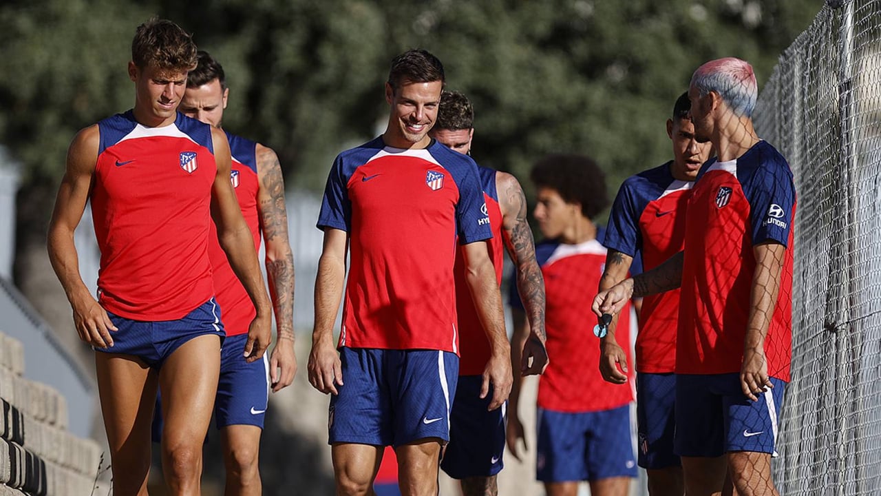 Los jugadores del Atlético salen a realizar la sesión matinal de este sábado.Twitter / Atlético de Madrid