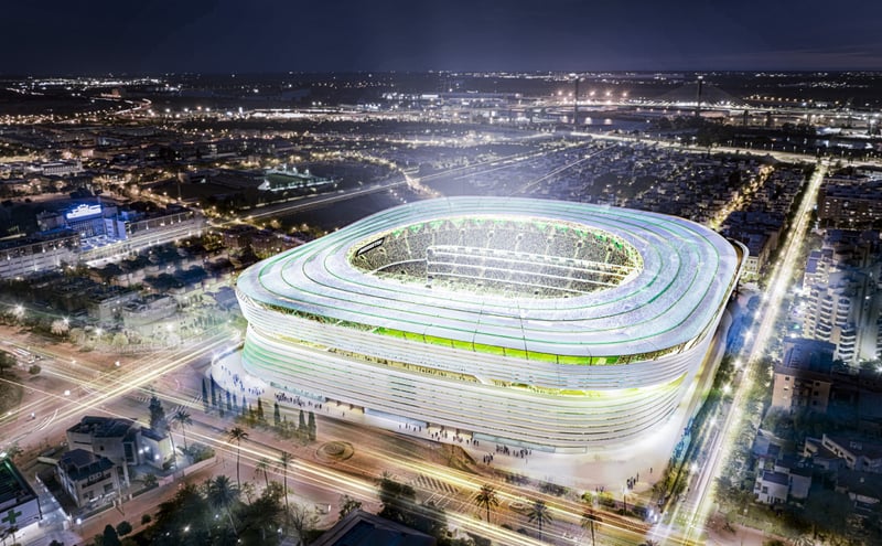 Por su parte, en La Palmera ya presentó a finales del pasado agosto en el Ayuntamiento de Sevilla el proyecto del Nuevo Benito Villamarín para su cierre definitivo, así como el uso de los terrenos aledaños al estadio para su adecuación al PGOU de Sevilla, en lo que también se trabaja junto a los responsables de Urbanismo de la ciudad para unas obras que comenzarán en junio de 2024. El consejo de administración del Betis, con su presidente Ángel Haro a la cabeza, presentó al alcalde el proyecto de finalización del estadio bético, que está prevista para mediados de la temporada 2025-2026 y que obligará al conjunto verdiblanco a jugar sus partidos en La Cartuja durante las obras. El remozado escenario será, en esencia, la unión de la tribuna de Preferencia, la única que queda de las obras para el Mundial de 1982, con las zonas de Gol Sur y Gol Norte para abrocharlo de forma definitiva; y su aforo quedará casi como actualmente, al pasar de 60.721 a 60.379 espectadores.