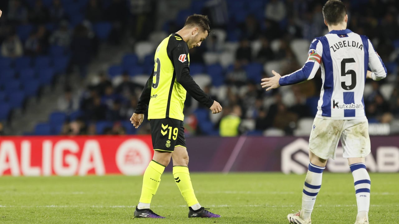 El de Catoira, cabizbajo durante la derrota en Anoeta, su última aparición en LaLiga.CORDON PRESS
