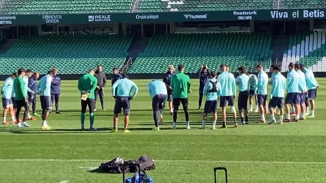 El equipo verdiblanco se ha ejercitado en el estadio Benito Villamarín a poco más de 24 horas de que empiece su próximo partido de LaLiga contra el FC Barcelona