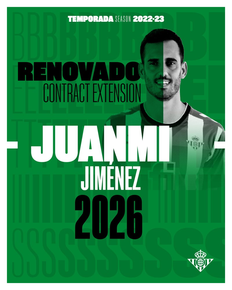 La inoportuna y grave lesión de Juanmi en Helsinki a primeros de septiembre dilató la firma, pero no por insistencia de la entidad, sino del propio delantero, que prefirió centrarse en la recuperación y evitar cualquier malentendido. Ya recuperado felizmente el ex de Málaga, Real Sociedad y Southampton, que, incluso, tuvo minutos ante el Athletic, se retomó una cuestión irreversible, concretando un anuncio que supieron 'cebar' con el arte habitual los responsables de las redes sociales verdiblancas, aunque ya la corona de rey, a pesar de que están calentando motores los de Oriente para salir en cabalgata mientras el Betis se mide con el Ibiza en los dieciseisavos de la Copa del Rey, daba una pista importante al tratarse del apodo que cariñosamente aplican al punta desde que desatara su aportación anotadora para convertirse en 'pichichi' heliopolitano de la 21/22, aunque se confirmaba minutos más tarde.