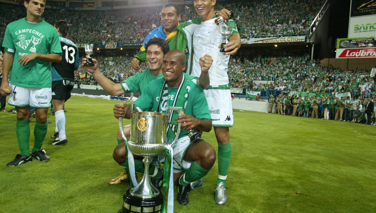 Los cuatro brasileños que ganaron la Copa del Rey en 2005 con el conjunto heliopolitano recrean la icónica foto durante un encuentro benéfico y las redes en verdiblanco se derriten