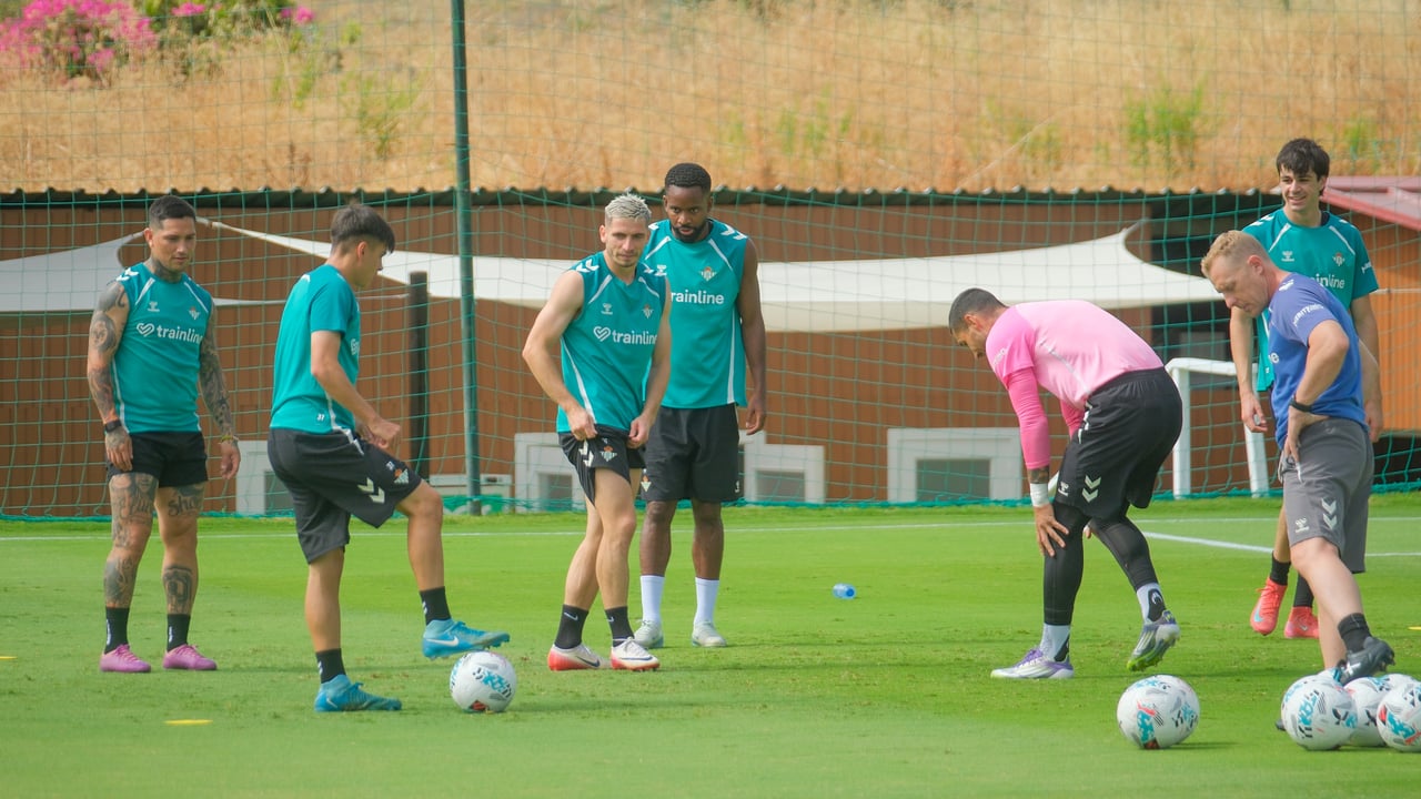 Salvo Dani Pérez, con el balón, varios de los prescindibles en verdiblanco se ejercitan en Marbella (Petit y Perraud ya se fueron).Lince