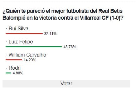 Ovacionado durante tramos del partido por la afición bética, Luiz Felipe correspondía al respetable del coliseo de Heliópolis celebrando cada acción defensiva dirigiéndose a ellos con dientes apretados y puño cerrado. Por ello, no fue raro que los lectores de ESTADIO Deportivo hayan elegido a Luiz Felipe como el mejor futbolista del Real Betis contra el Villarreal CF.