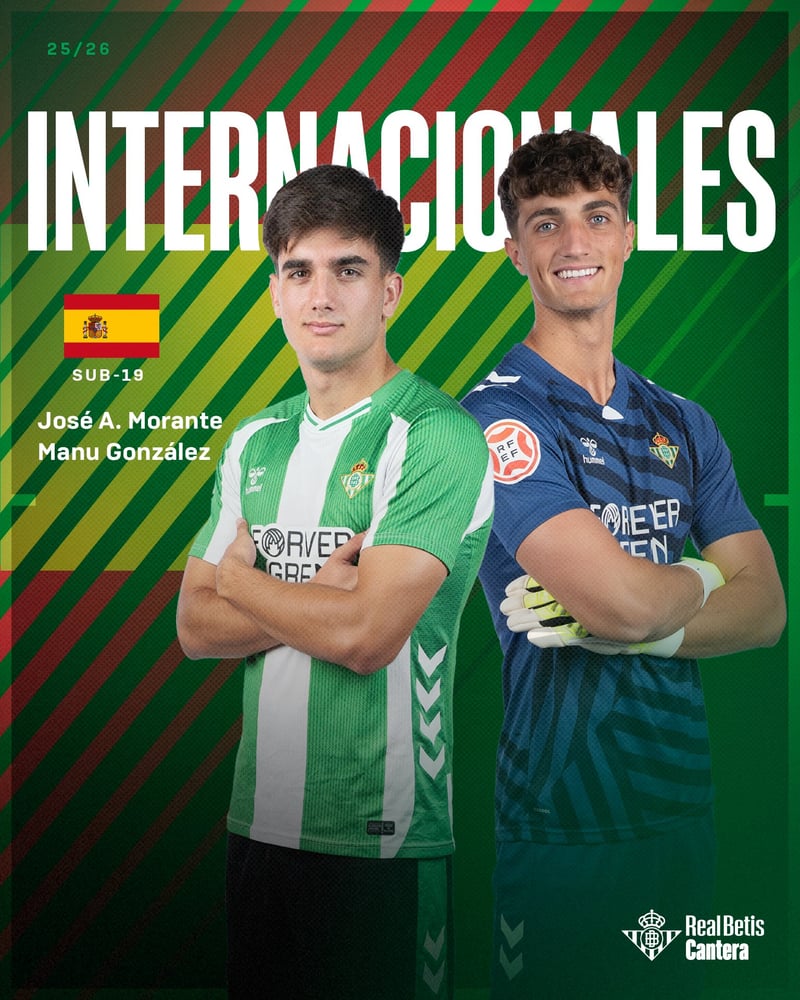 Además de Fornals, que va con la absoluta, y Pablo García, con la sub 21, el Real Betis también ha conocido este viernes que el portero Manu González y el extremo José Antonio Morante han sido convocados por la selección española sub 19 para el torneo de la Ronda Élite que se jugará en Alicante entre el 25 y el 31 de marzo, valedero para la clasificación al Europeo de la categoría que se celebrará en Gales el próximo verano.