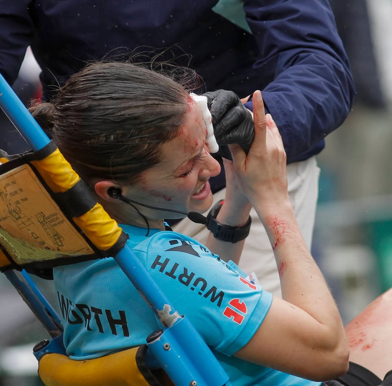 Guadalupe Porras Ayuso, asistente del árbitro adscrito al colegio balear Guillermo Cuadra Fernández, no ha podido ejercer siquiera un cuarto de hora en el encuentro de la jornada 26ª de LaLiga para el que estaba designada, que enfrenta este domingo a Real Betis y Athletic Club en el Estadio Benito Villamarín. La pacense ha tenido muy mala suerte, ya que chocó aparatosamente con una cámara de televisión mientras corría la banda más cercana a la grada de Preferencia del coliseo de La Palmera para seguir desde cerca la transición iniciada por Johnny Cardoso y culminada con una fenomenal asistencia de Willian José a la espalda de los centrales que aprovecharía Ezequiel 'Chimy' Ávila a los trece minutos para adelantar en el marcador a los hombres de Manuel Pellegrini. La colegiada internacional desde 2014 tuvo muy mala suerte, ya que se produjo una brecha que le llenó la cara de sangre.
