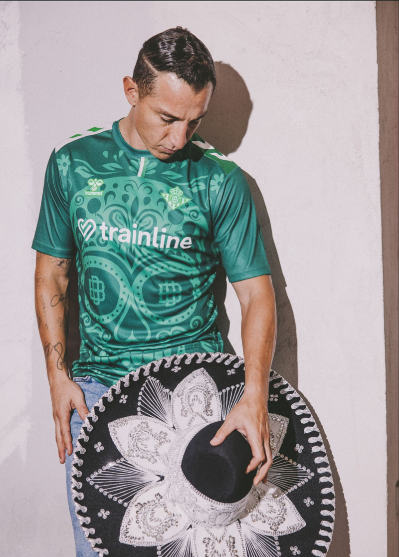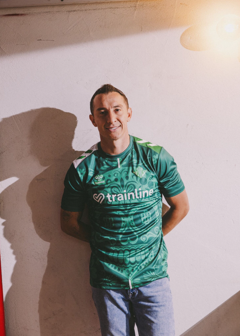 El logo de Hummel y el propio escudo del club heliopoliano se aplican sobre la prenda mediante TPU, añadiendo un efecto iridiscente, lo que aporta reflejos cambiantes según la exposición a la luz. Estas prendas las lucirán los jugadores del primer equipo durante el calentamiento del partido de la décima jornada de LaLiga EA Sports que enfrentará al Real Betis y el Atlético de Madrid el próximo lunes 27 de octubre en el Estadio La Cartuja. La sesión fotográfica de esta colección ha estado protagonizada por Andrés Guardado, jugador histórico de la selección azteca y futbolista de referencia en verdiblanco en las últimas temporadas, ya retirado, y se ha realizado en el restaurante mexicano Takool, en Sevilla.