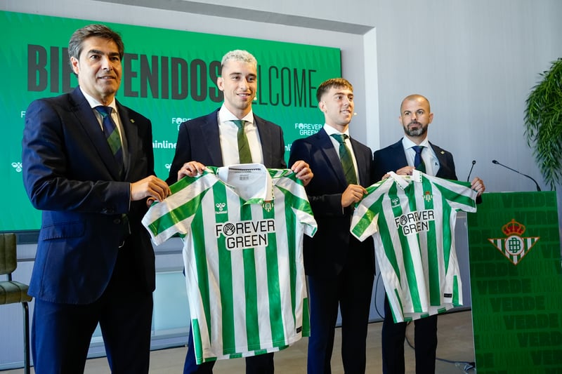 El lunes comenzó con alegría y con la Sala Lounge de la Ciudad Deportiva Luis del Sol engalanada de verde. El motivo fue la presentación de Marc Roca e Iker Losada como 'nuevos' futbolistas del Real Betis. Una afirmación que no es del todo cierta, puesto que el centrocampista catalán, el primero de los citados, ya era jugador verdiblanco la pasada temporada. Ahora, con la adquisición en propiedad del mediocentro en los días pasados, el club decidió que tanto él como el joven atacante gallego compareciesen ante los medios de manera oficial. En la presentación, hubo tiempo para llantos, como el del novato Losada al presenciar la felicitación en vídeo de sus familiares y amigos, o para risas, como las de Marc Roca al advertir, prácticamente de forma oficial como primera voz verdiblanca, la llegada de su excompañero Diego Llorente. También para que Manu Fajardo, director deportivo del club, y Ángel Haro, presidente primero de la entidad, desglosaran la actualidad verdiblanca en materia económica en plena vorágine de incorporaciones. En este sentido, tras la rueda de prensa de los dos futbolistas, fue el turno de ellos.
