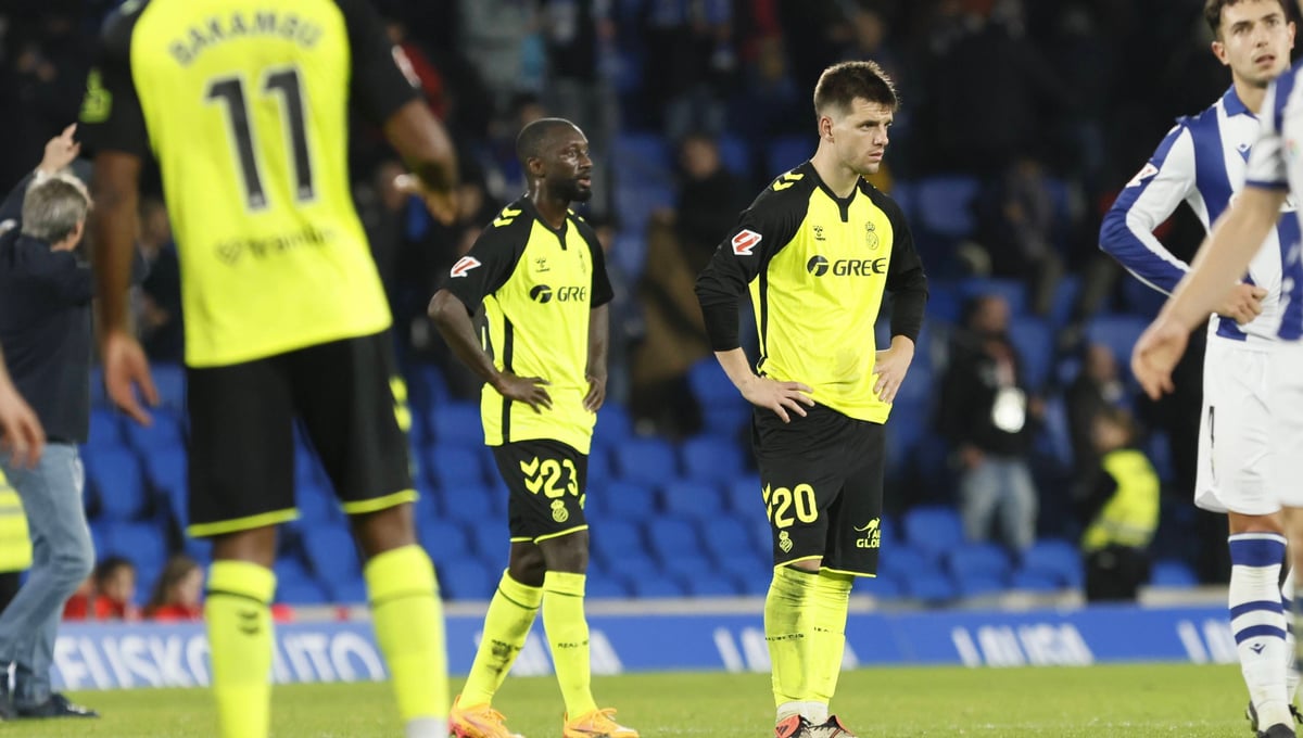 Los jugadores del Betis, cabizbajos en Anoeta. CORDON PRESS