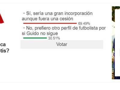 Además, según los resultados de la #EncuestaHelvetiaED propuesta por www.estadiodeportivo.com, puede decirse que el beticismo está tan ilusionado o más que el propio Marc Roca. Así, un 69,49 por ciento de los participantes en el sondeo dan el visto bueno a su llegada al considerarla una incoporporación que haría subir la calidad de la plantilla a pesar de que 'sólo' se tratase de una cesión. El 30,51 por ciento restante aboga por buscar un perfil más específico de mediocentro defensivo por si Guido Rodríguez cambia de aires antes de entrar en el que sería su último año de contrato.