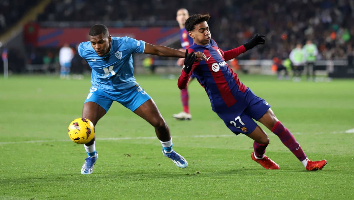 El hispano-guineano se deshace del culé Lamine Yamal en el encuentro de este curso en Montjuic.CORDON PRESS