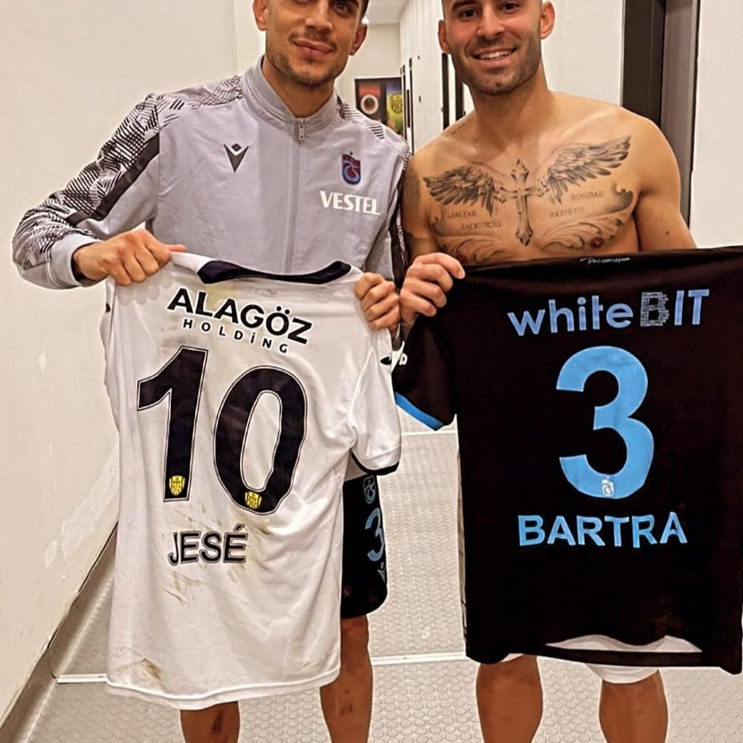 "Un placer volver a verte, amigo. Te deseo siempre todo lo mejor, crack @MarcBartra", escribió en sus stories de Instagram Jesé Rodríguez, compartiendo una foto en la que posaba con la camiseta del Trabzonspor con el número '3' del zaguero catalán, quien devolvió los buenos deseos y compartió la imagen en la que él sujeta la zamarra con el '10' que el grancanario luce en el Ankaragücü.
