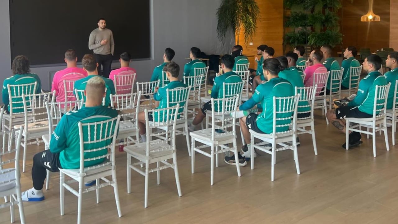 Roberto JIménez ha impartido una charla y ha intercambiado impresiones con los jugadores del Betis.@robertojimenez