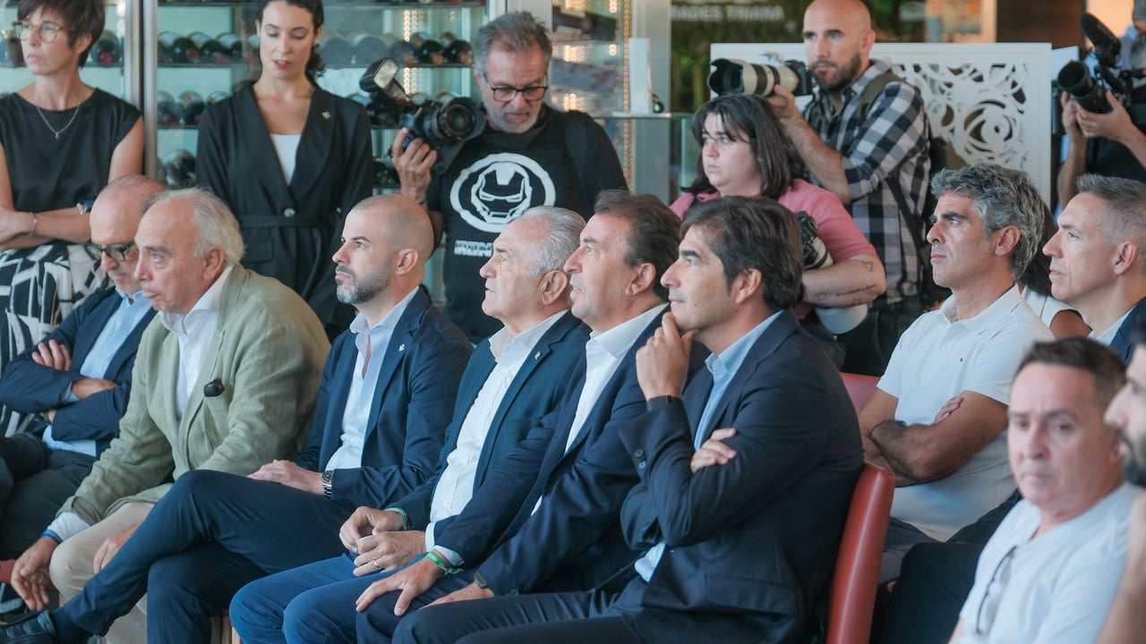 La plana mayor verdiblanca, durante la presentación de 'Antonio de Triana'.Lince