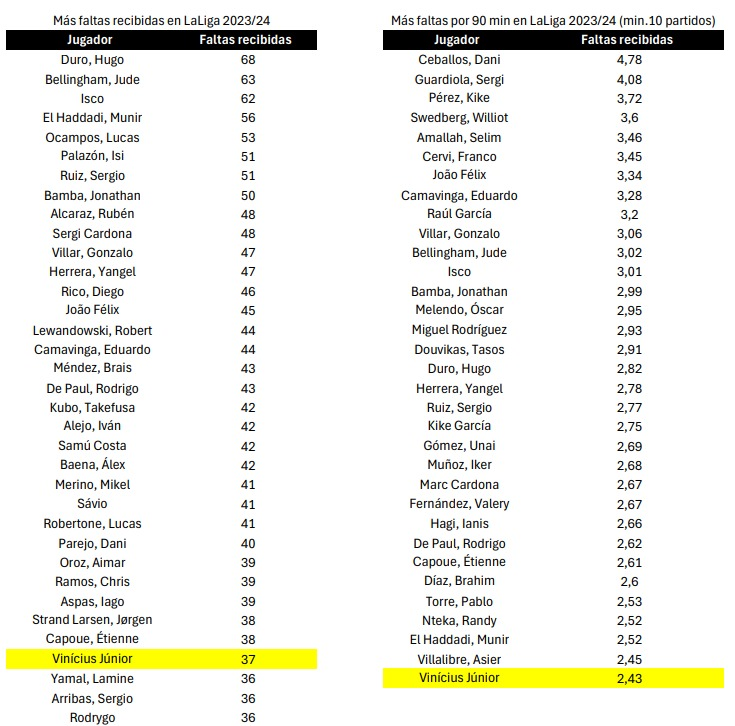 Sorprende el dato que reflejan las estadísticas transcurridas 27 jornadas del campeonato. Isco Alarcón, que lleva un tiempo alejado del campo de juego, sigue estando en top 3 de jugadores que más faltas recibe. El primer futbolista que lidera esta faceta es el valencianista Hugo Duro con un total de 68 faltas recibidas. Le sigue el talentoso inglés del Real Madrid Jude Bellingham con 63 infracciones recibidas. Y cierra el podio Isco, que ha recibido 62 faltas desde que viste la camiseta verdiblanca en el campeonato doméstico.