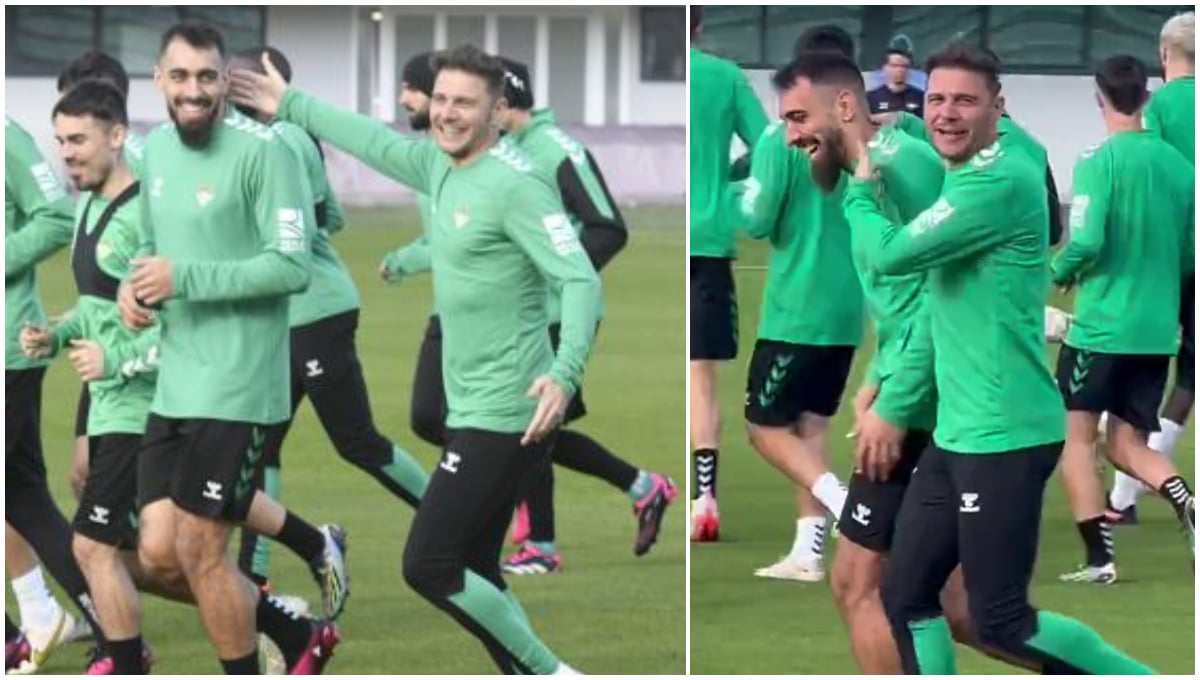 El capitán del conjunto verdiblanco, aunque no está disponible para el entrenador, realizó la primera parte de la sesión con el resto del grupo y volvió a hacer gala de su carácter jovial bromeando con el cumpleañero Borja Iglesias. "30 palitos... 30 palitos, tío, a ver si lo vendemos... ahora que podemos", decía entre risas mirando a las cámaras, antes de abrazar al Panda en pleno ejercicio de carrera por el césped.