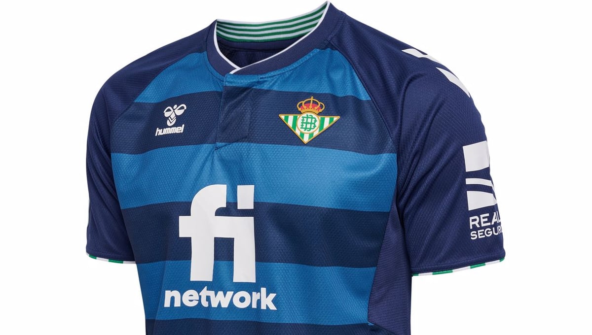 El Real Betis ha dado a conocer oficialmente este lunes su segunda equipación para la temporada 22/23, filtrada hace algunas semanas, aunque no fue hasta la noche del pasado sábado cuando se divulgaron sus primeras imágenes reales, captadas en el perchero de una de las tiendas con licencia para venderlas. Con calzona blanca, recuperando el clásico de la primera indumentaria (que, tras el cambio a verde de la 18/19, muta a negro esta campaña, como en la Copa del Rey 21/22 y algunas visitas, como al Ramón Sánchez-Pizjuán o el Santiago Bernabéu), la camiseta luce dos tonalidades de azul, uno más oscuro en los hombros y, por ejemplo, como fondo al logotipo de Hummel y el escudo oficial, así como otro más claro, combinándose en franjas horizontales. En el interior del cuello y el borde de las mangas, un guiño verdiblanco, pues LaLiga exige que la ropa alternativa difiera prácticamente en todo a la titular.