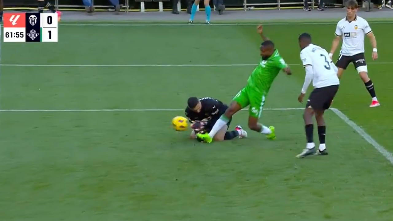 Sin embargo, esa acción, que supuso el 1-1, pudo haber sido la del 1-2, pues, en el minuto 62, dos antes, Cédric Bakambu debió firmar el segundo del Betis. El propio delantero congoleño colgaba en sus redes sociales un gif de Mourinho donde el míster portugués dice 'si hablo, me meteré en graves problemas, así que no quiero hablar', junto a una cara sonriente de alivio. "Al final, el 90 por ciento de esas acciones se castigan con falta a favor del portero. Parece que no tiene cogida del todo la pelota, porque se la saca muy fácil", explicaba en zona mixta Pablo Fornals, que forzó el remate de su compañero al mandar un derechazo al poste. Las imágenes demuestran claramente que, aunque detiene en primera instancia el esférico, Mamardashvili en ningún caso lo tiene sujeto firmemente, hasta el punto de que la puntera del ex del Galatasaray no le dobla los guantes ni le golpea. Inexplicablemente, con una mínima revisión, se anuló el tanto.