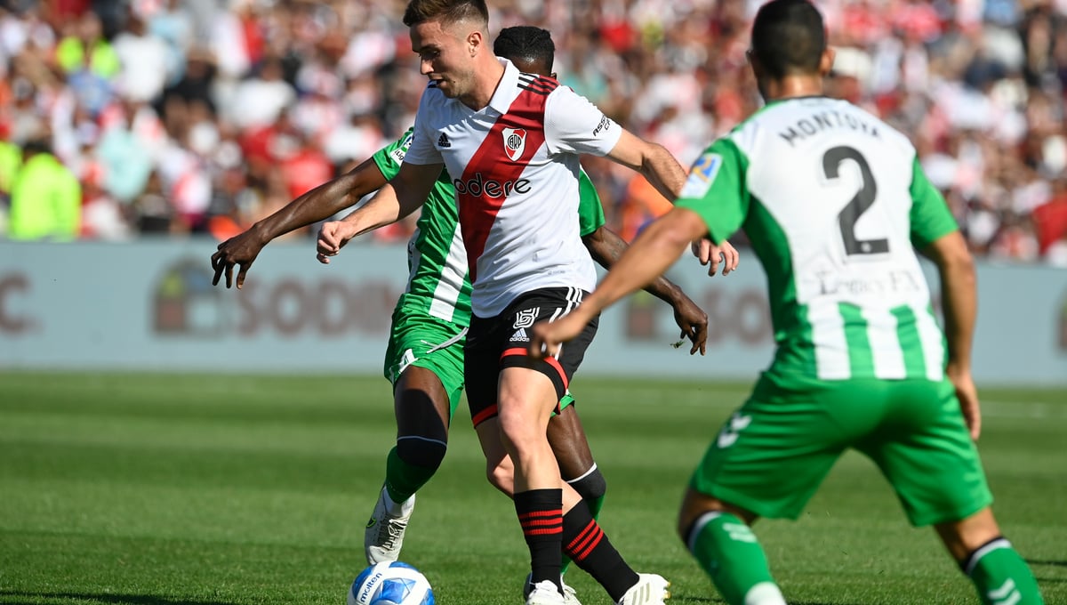 Desastroso encuentro de los verdiblancos, que prácticamente no comparecieron en el Estadio Malvinas Argentinas y fueron un 'sparring' de lujo para la despedida del 'Muñeco' Gallardo de River Plate.