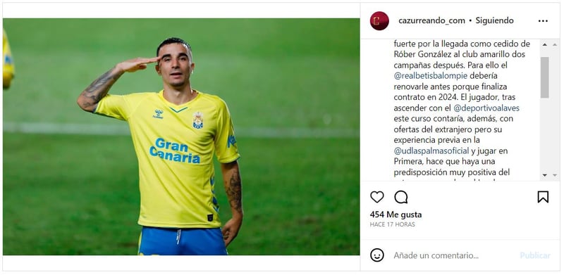 "La UD Las Palmas apuesta fuerte por la llegada como cedido de Rober González al club amarillo dos campañas después. Para ello el Real Betis debería renovarle antes porque finaliza contrato en 2024. El jugador, tras ascender con el Deportivo Alaves este curso contaría, además, con ofertas del extranjero pero su experiencia previa en Las Palmas y jugar en Primera hace que haya una predisposición muy positiva del extremo para volver al club insular", asegura la mencionada información, remarcando que esto acaba de empezar y aún habría mucha tela por cortar.
