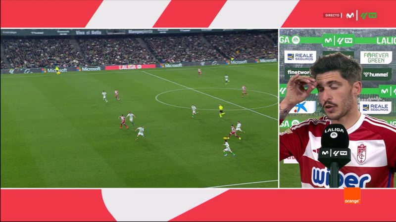 Nadie mencionó que, al cuarto de hora, Bruno Méndez pudo irse a la casera por su feísima entrada sobre Ayoze Pérez, al que sí sacó del campo, recibiendo una amarilla que, a ojos de analistas habituales, debió ser roja directa. Tampoco tienen por qué admitir o señalar ese error los nazaríes, pues cada uno defiende lo suyo, pero llama poderosamente la atención esta omisión y que pasaran por encima en el posible no fuera de juego de Arezo, pero que basaran sus quejas en una acción inexistente y, en cualquier caso, no punible. El primero en referirse a la misma ante los compañeros de Movistar Plus fue el propio técnico rojiblanco. "La jugada que precede al córner del gol de Isco fue un claro fuera de juego; Augusto Batalla va a tomar la pelota con la mano y se interpuso un jugador del Betis. Eso es lo que protestamos al línea, al árbitro y al cuarto árbitro. Dicen que no lo habían visto", argumentaba Alexander Medina. Lo que ocurre es que no pasó como cuentan.
