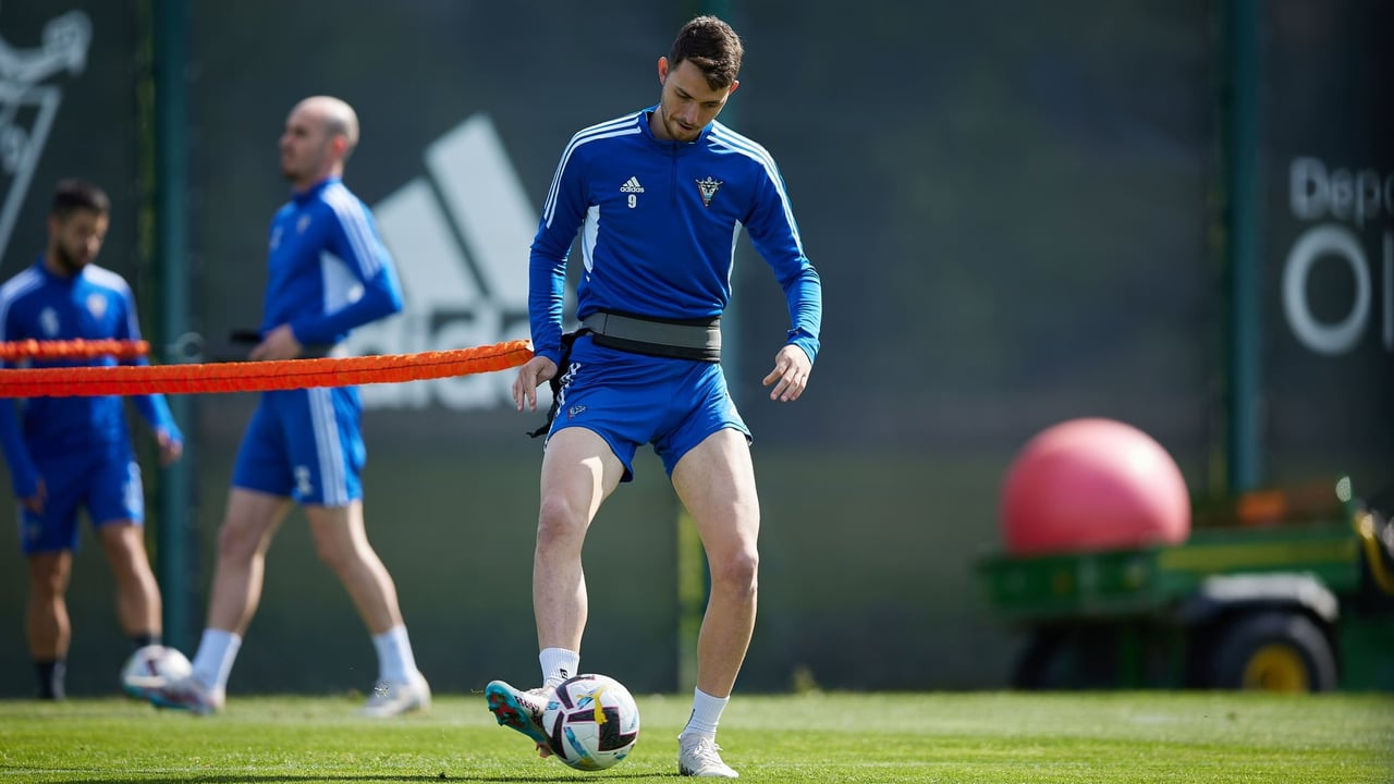 El de Olesa de Montserrat realiza un ejercicio durante una de sus últimas sesiones en Miranda de Ebro.@CDMirandes