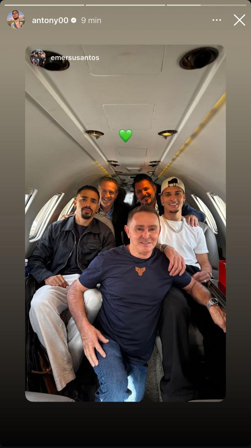 Después de obtener luz verde, Antony ya está preparado para aterrizar en la capital hispalense, lo que se producirá a las 21:45 horas en un vuelo privado que ya ha despegado procedente de tierras inglesas acompañado de su hermano Emerson Santos, su padre y sus agentes Junior Pedroso y Cris Torelli. Una vez en la capital andaluza pasará el reconocimiento médico, firmará su nuevo contrato hasta 2030 y comenzará a preparar el choque liguero que enfrentará al Betis con el Levante tras el parón liguero.