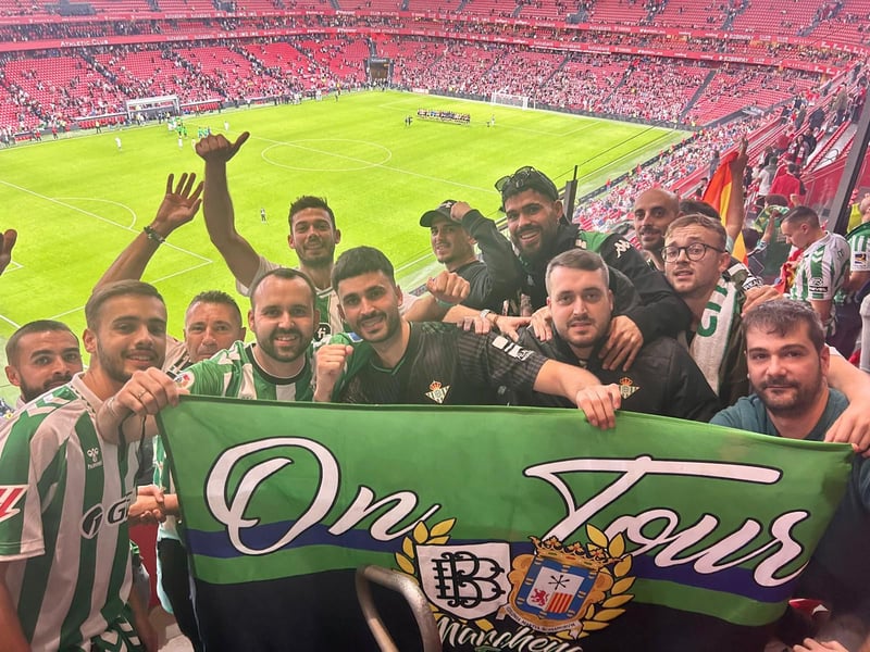 Presente en el empate a uno del domingo, este aficionado comenta que emprendió el viaje en furgoneta desde la localidad sevillana de Marchena: "Este viaje surge de que tenía las ganas de pegarme un viaje con mi padre, que mi padre es el que me hizo bético, y llevaba ya bastante tiempo metiéndole caña de que quería pegarme un viaje con él. Surgió la idea y allí que nos hemos presentado. Me he ido para allá con mi padre y con mi hermano. Y nada, nos alquilamos una furgoneta y nos presentamos en Bilbao. En total, contando con las paradas, hemos tenido unas nueve horas, más o menos".