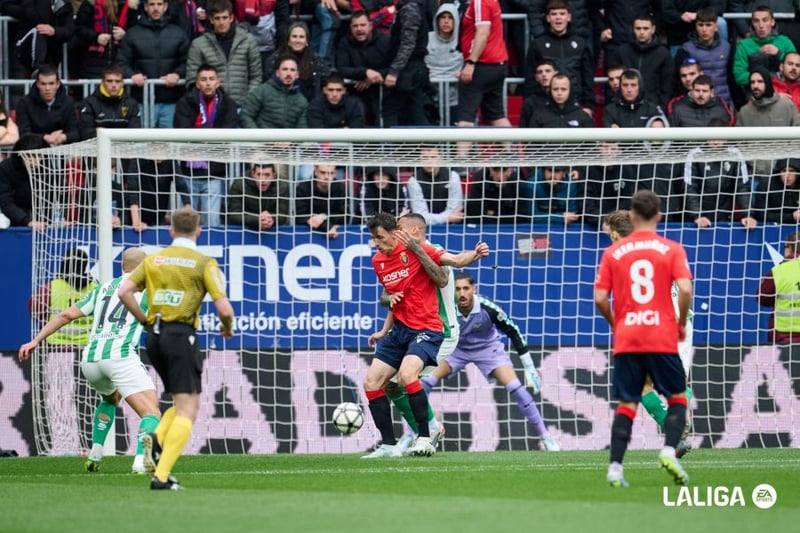 "(En el minuto 38) El juego se reanuda tras un córner y una posterior parada del portero del Betis -paradón de Álvaro Valles a Budimir-, el balón queda suelto en el área de meta. Un jugador de Osasuna llega antes al balón y un defensor visitante, en mecánica de despeje, impacta con su pie en la pierna del delantero, provocándole un desequilibrio que genera la caída. El árbitro señala penalti y el VAR apoya la decisión", analizan los árbitros. La acción le costó muy cara al Real Betis, ya que además del gol que le acabó costando dos puntos (acabó 1-1), Antony vio una amarilla por protestar que era la quinta y acarrea una sanción que le impedirá estar en el próximo choque ante el Girona FC.