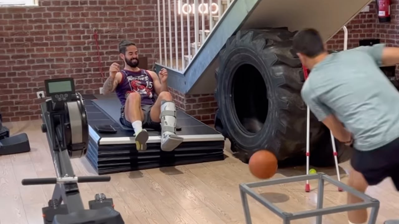Intervenido de la fractura diafisaria en su peroné izquierdo el pasado 20 de mayo, Isco se casó con su pareja y madre de sus tres hijos, Sara Sálamo, portando muletas, al tiempo que lleva aún una bota ortopédica (conocida como Walker Fijo Alto) en la zona dañada, pero no ha dejado de fortalecer el resto del cuerpo. Como ya se explicó, el escenario más optimista cifraba su regreso en alrededor de un mes, aunque se decidió apostar sobre seguro y que pasara por quirófano, con lo que el pronóstico ampliaba el margen hasta las 10-12 semanas. Tres meses exactamente estuvo fuera Guido Rodríguez, aunque su rotura fue del mismo hueso, aunque distal (cerca del maleolo del tobillo) y no en la zona media, como la del malagueño. En el peor de los casos, se le espera para el inicio de LaLiga a mediados de agosto, pero desde el círculo más cercano a Alarcón señalan sus excelentes sensaciones, lo que se traducirá seguramente en un adelanto.