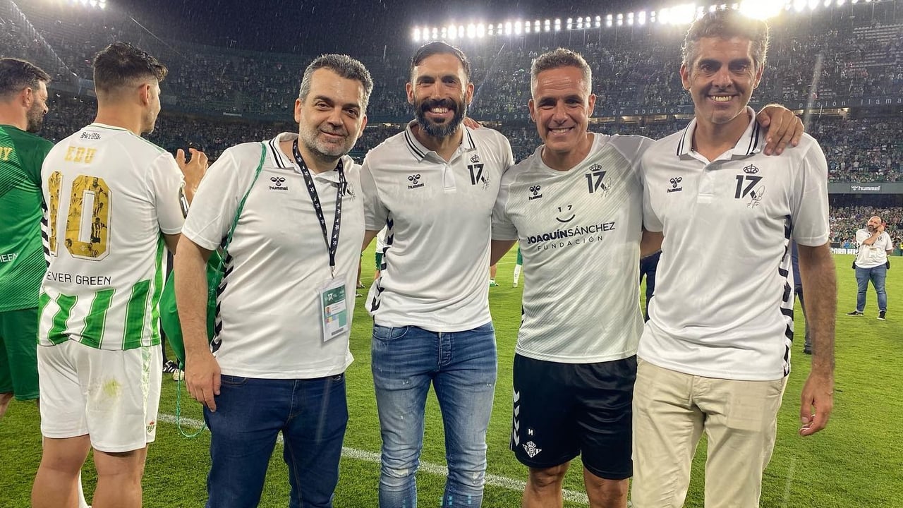 El vasco, junto a Juan Salas, Marcos Álvarez y Nacho Alarcón, durante el homenaje de despedida a Joaquín.IG