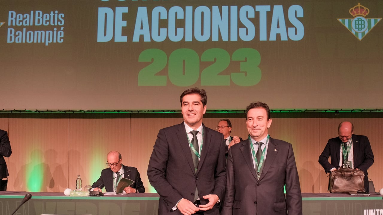 Fuera del césped, la actualidad del Real Betis pasa por la celebración de su Junta General de Accionistas, que tendrá lugar este martes, a partir de las 18:00 horas, en el Hotel Barceló Renacimiento. Sobre el papel, una cita plácida y sin sobresaltos para los actuales dirigentes después de la ampliación de capital llevada a cabo el pasado verano por valor de 42,9 millones de euros. Tras ella, el presidente, Ángel Haro, y el vicepresidente, José Miguel López Catalán, han elevado su control del club al poseer ya el 39% del accionariado, previo desembolso de más de 25 millones. Por ello, no tendrán problemas para sacar adelante la asamblea, pues la llamada oposición apenas tiene ya relevancia en el nuevo mapa accionarial, si bien hay puntos de la junta que han levantado cierta polémica.