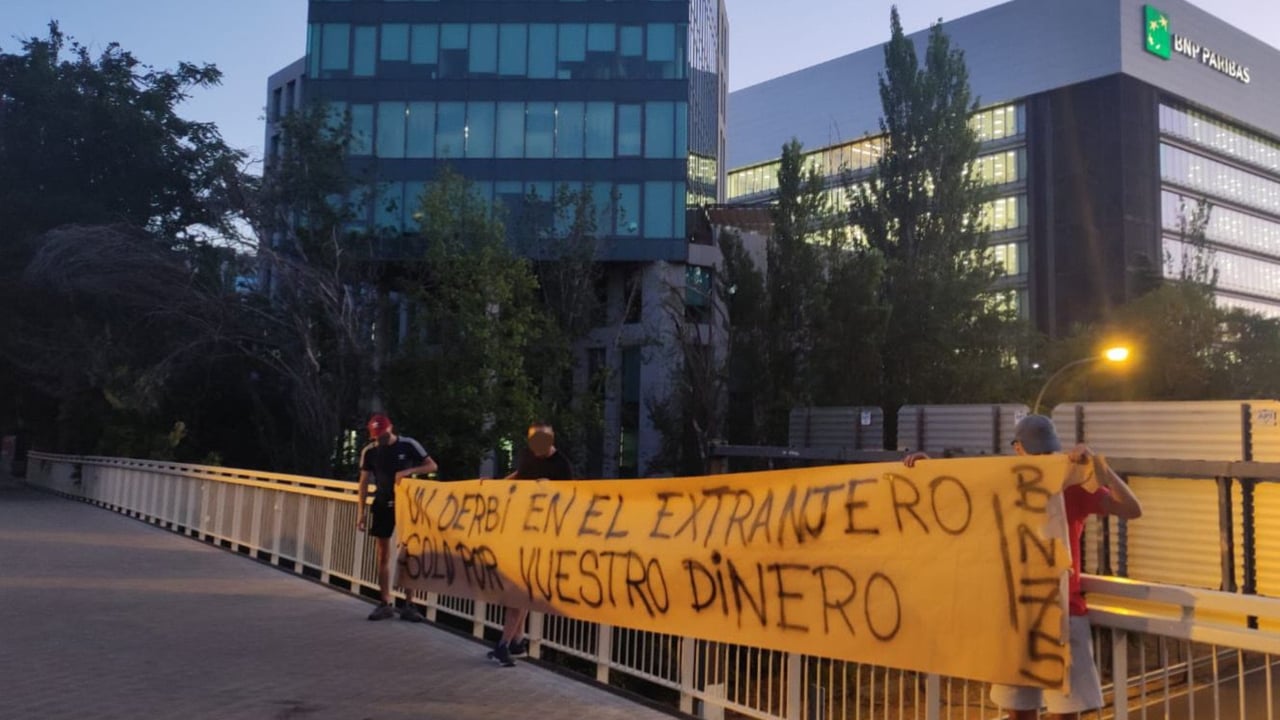 Si agrupaciones como Gol Sur 1907 y los responsables de perfiles tan afamados como @BetisBohemio y @BetisShirts exhibían el pasado viernes en el Nuevo Colombino, en los prolegómenos del encuentro ante el Burnley, una pancarta en la que se podía leer 'No al derbi en México', Biris Norte compartía este miércoles en sus redes sociales el despliegue de mensajes que han propiciado en sendos puentes de Sevilla y Madrid, este último junto a la sede de LaLiga, donde rezaba: 'Un derbi en el extranjero sólo por vuestro dinero'. Unidos a su eterno rival por una misma causa, la histórica peña nervionense añadía: "El derbi sevillano es de Sevilla. De sus barrios, sus calles, su gente, sus aficiones. Nos oponemos a la mercantilización del mismo, como si de un Madrid-Barça se tratase, para que alguno se llene la cartera. Un derbi sin Sevilla no es un derbi", citando a los perfiles de la patronal de los clubes, el Sevilla FC y el Real Betis.
