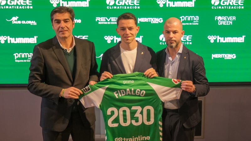 El único fichaje invernal del Real Betis, el asturiano Álvaro Fidalgo, comparecía por vez primera como futbolista verdiblanco este mismo martes en la zona lounge de la Ciudad Deportiva Luis del Sol. El nuevo dorsal 15, que firma hasta el 30 de junio de 2030, posó inicialmente para los medios gráficos junto al presidente heliopolitano, Ángel Haro, y el director deportivo de la entidad, Manu Fajardo.