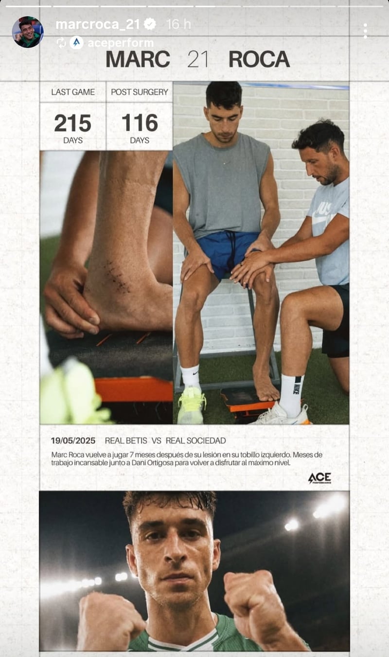 Su exultante felicidad ha sido compartida por todos sus compañeros (y exbéticos como Assane Diao o Nobel Mendy), que han llenado su post de respuestas del todo empáticas y alentadoras, demostrándole que han sufrido esta larga ausencia con él. Marc Roca también ha recibido una pública muestra de caluroso cariño por parte del Real Betis, que a través de los canales del club le felicitó por su vuelta al equipo: "Si hay alguien más duro que una Roca, ése es Marc. ¡Felicidades por tu vuelta a los terrenos de juego!".