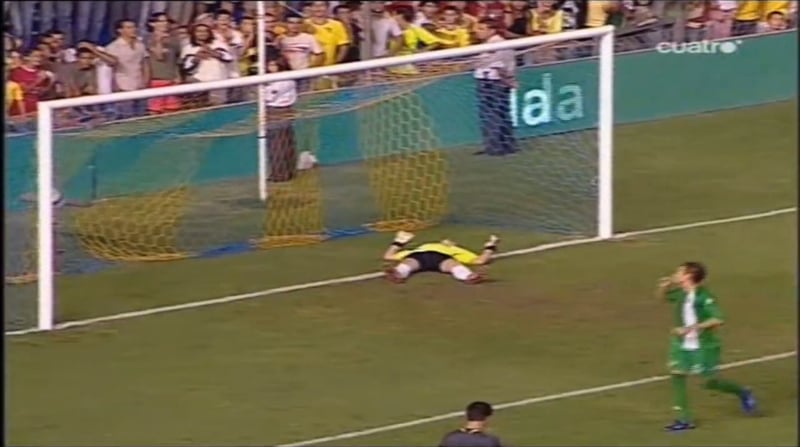 El público de Cádiz, que me imagino que será más madridista que bético, y claro, yo iba al punto penalti y recuerdo que la gente me pitaba, y cuando marqué el penalti, pues tú sabes, me salió como un gran gesto de “tranquilos”, y la verdad que lo recuerdo con alegría, pero me acuerdo que la presión, noté la presión en ese momento.