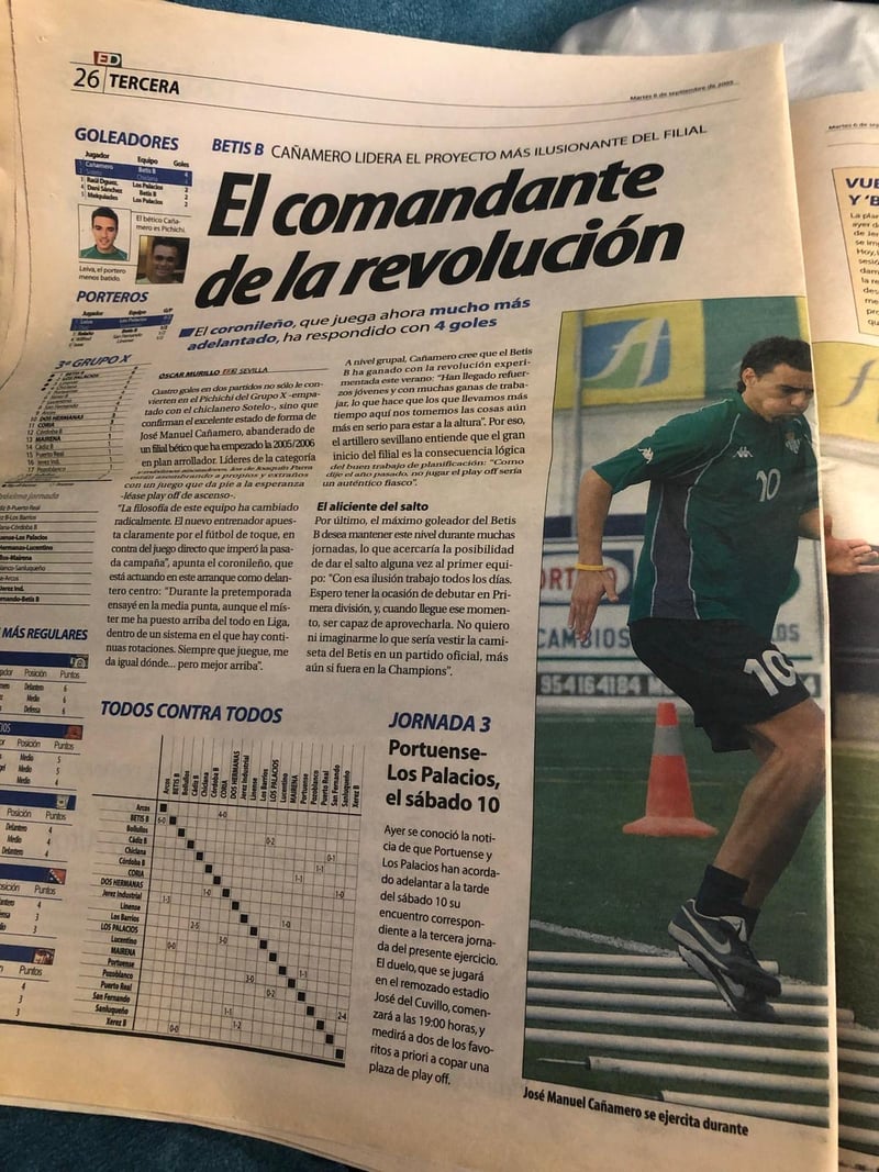 José Manuel Cañamero asomó la cabeza desde El Coronil a la banda derecha del primer equipo en el final de la primera etapa de Joaquín Sánchez en el Real Betis, cuando firmó por el Valencia CF. “Yo fui el último cambio de Joaquín”, comenta el coronileño al recordar aquella final del Trofeo Carranza del mes de agosto de 2006 ante el Cádiz. Casi veinte años después, ‘Cañita’ — como así le llamaban en el vestuario — es capaz de recordar cada minuto de aquella prestigiosa competición. No es para menos después de que aquel equipo dirigido por Javier Irureta y conformado por futbolistas de la talla de Edu, Assunçao o Juanito derrotara al Real Madrid en semifinales 3 (4-5) 3. Fue en la tanda de penaltis, donde anotaron jugadores como Van Nistelrooy o Robinho y en la que el propio Cañamero consiguió anotar uno. “Lo tiro flojo y al medio” recuerda con una sonrisa tras batir a Iker Casillas el que portara el ‘19’ bético en aquella noche gaditana.