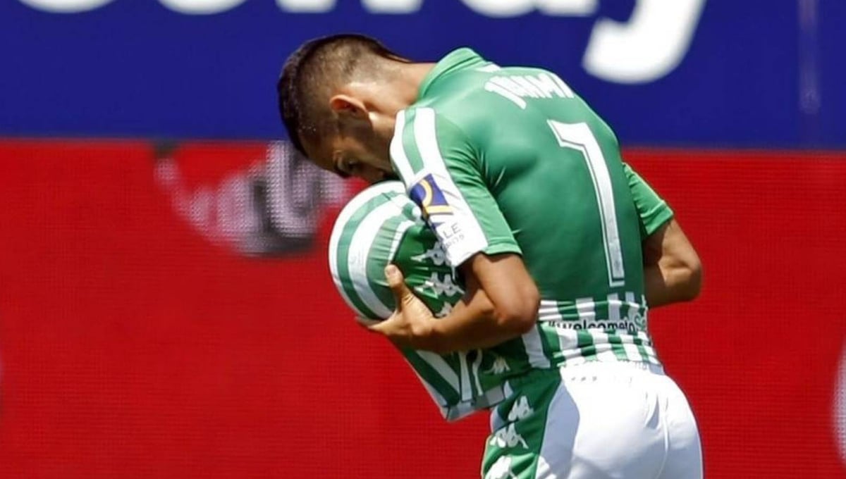Juanmi, celebra uno de sus goles conseguido con el Real Betis.Twitter / Juanmi Jiménez