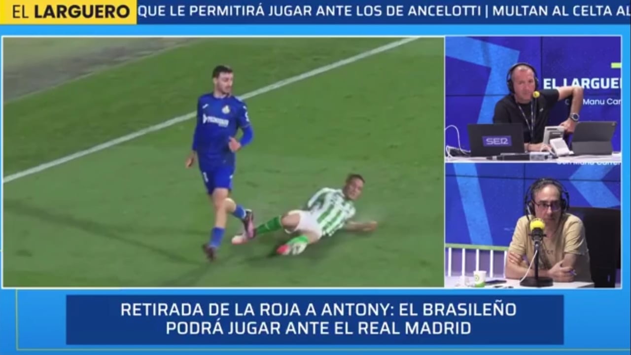 Como lo habitual es ver a la justicia deportiva negando la mayor, a todo el mundo le ha cogido por sorpresa que el Comité de Competición de la RFEF haya decidido retirar al futbolista del Real Betis Antony Matheus dos Santos la tarjeta roja que vio el pasado domingo ante el Getafe CF y que le impedía jugar este sábado contra el Real Madrid. Sin embargo, más allá de un entendible asombro, hay quien se lo ha tomado como algo personal. En el CTA que dirige el sevillano Luis Medina Cantalejo no dan crédito a lo sucedido, ya que 'off the record' defendían la expulsión aun viendo en las imágenes que el extremo brasileño no llega a tocar al defensor azulón Juan Iglesias. No deja de ser curioso el criterio, pues casi todos los excolegiados que colaboran con medios de comunicación habían dado la razón a los verdiblancos en sus quejas y consideraban evidente que no podía haber sanción alguna. Casi todos. Y es que a nadie le ha sentado peor la noticia que a Eduardo Iturralde González, que la pasada madrugada se ha despachado con contundencia contra la jueza que ha firmado el indulto, en una descontrolada rajada.