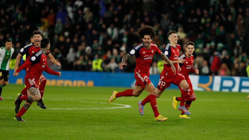 En la competición liguera, el Real Betis ganó las seis últimas veces que Osasuna jugó en el Benito Villamarín -la temporada pasada, por la mínima con gol de Borja Iglesias- pero el precedente más reciente, en Copa el pasado 18 de enero fue un empate a dos resuelto en la tanda de penaltis a favor de los rojillos.