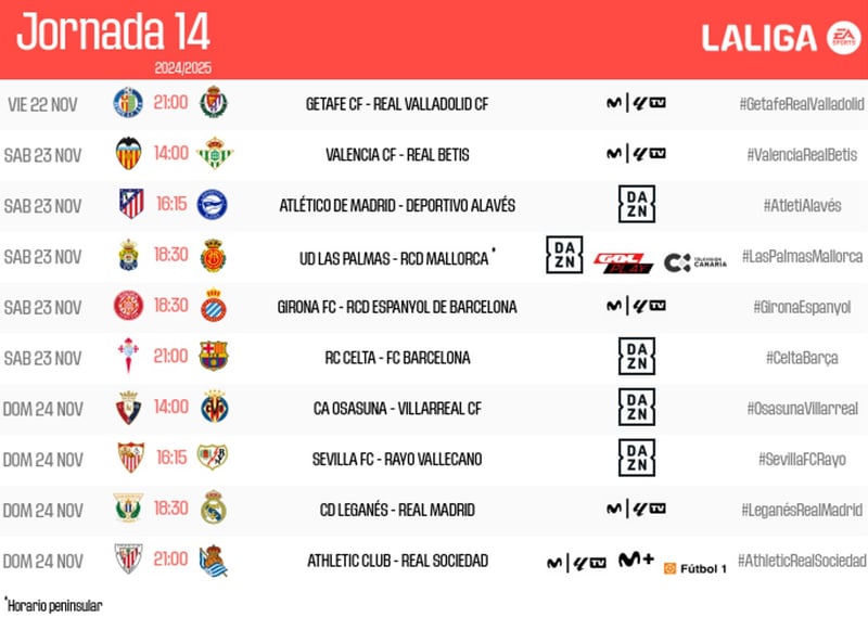 El Real Betis jugará dos veces seguidas a las 14:00 horas, aunque transcurrirán casi dos semanas entre que reciba al RC Celta de Vigo en el Benito Villamarín a la hora de comer del domingo 10 de noviembre en la jornada 13ª de LaLiga y visite al Valencia CF en Mestalla también a las dos de la tarde del sábado 23 del mes venidero. En medio, un parón de selecciones, el tercero del presente ejercicio, que reserva una 'jugarreta' para Manuel Pellegrini. Y es que el verdiblanco será, junto con el che, el tercer equipo que antes se reincorpore a la competición, pues su pulso está ubicado en el segundo turno de fecha 14ª del campeonato regular, sólo por detrás del Getafe CF-Real Valladolid de las nueve de la noche del viernes 22-N. Una cuestión que, unida al desplazamiento hacia la ciudad del Turia, que deberá producirse en la víspera, reduce drásticamente las opciones de que jueguen de inicio los internacionales.