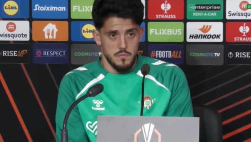 Fornals habla en la rueda de prensa previa a Grecia con el Betis para la visita europea del Betis al PAOK.Betis TV